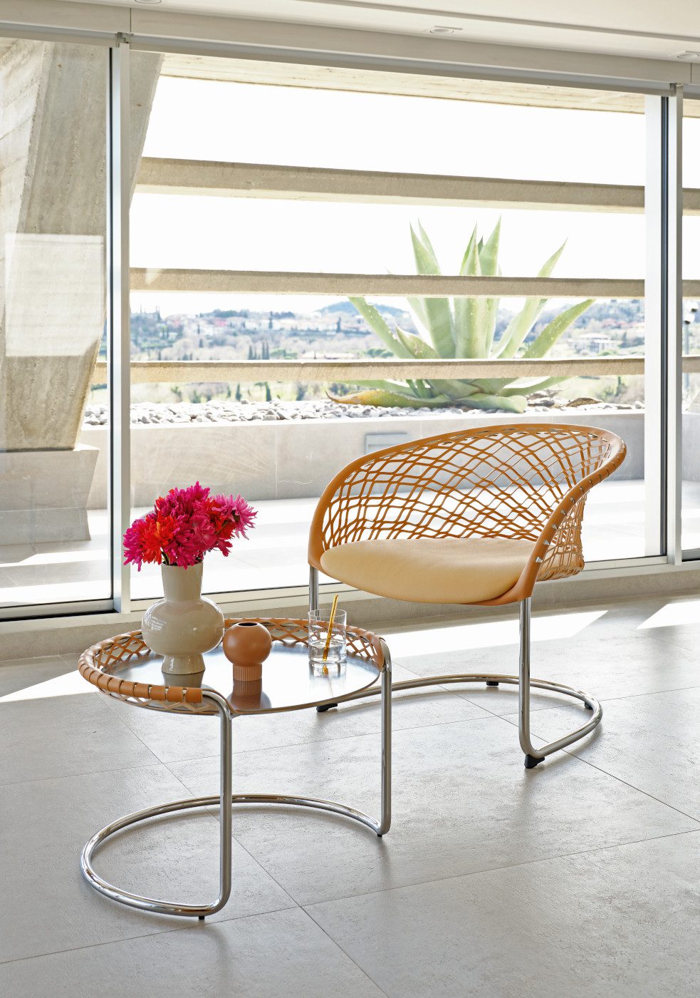 P47 is inspired by the multidimensionality of the universe and by what we do not yet know, which the designer Franco Poli has tried to investigate through an ambitious project. We embraced his idea and collaborated with great synergy to create a collection in which leather is fixed in an absolutely innovative way. The leather is applied directly to the frame, anchored only with visible rivets, creating a play of tensions that guarantees extraordinary seating comfort and at the same time gives a sophisticated aesthetic.