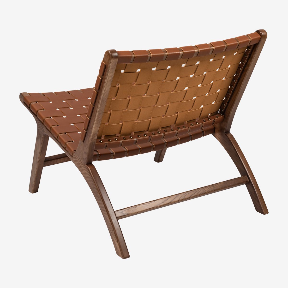 Direct mee te nemen uit de winkel! Retro wooden chair with woven leather seat and backrest. Always: Seat + back Cognac saddle leather
