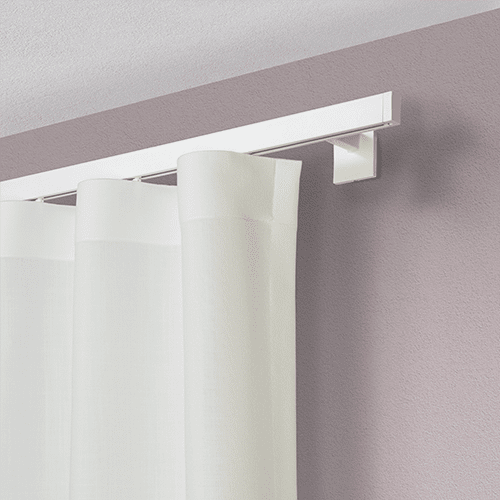De wave-plooi is een moderne en strakke afwerking waarbij de stof in gelijkmatige golven naar beneden valt. Door het speciale railsysteem ontstaat een vloeiend ritme dat rust en symmetrie uitstraalt.