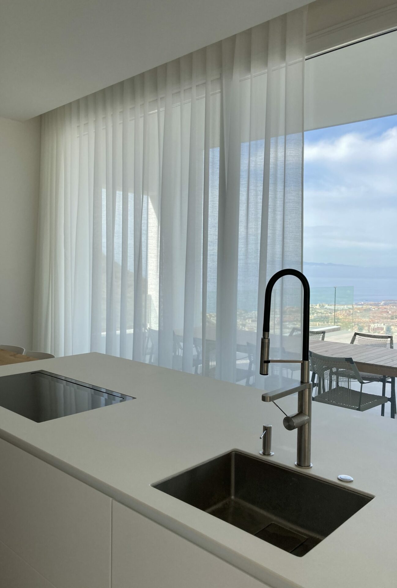 Wave-gordijnen zijn bijzonder geschikt voor grote ramen en strakke interieurs, omdat ze een minimalistische en eigentijdse look creëren. Afhankelijk van de gekozen stof, transparant, lichtdoorlatend of verduisterend, kan je spelen met sfeer, lichtinval en privacy.