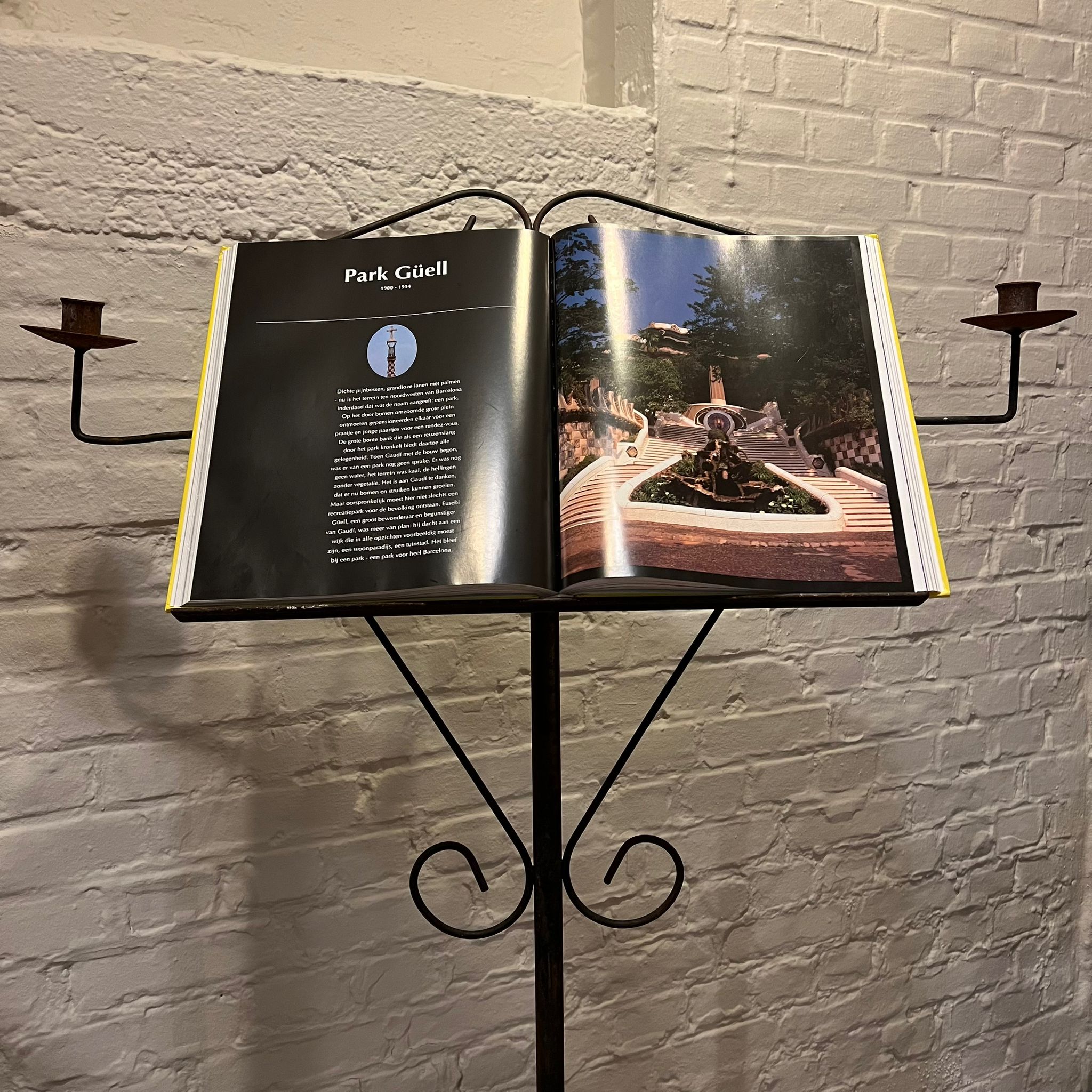 Een unieke, vintage, smeedijzeren muziekstandaard dat gebruikt kan worden voor zowel boeken, als menu’s…