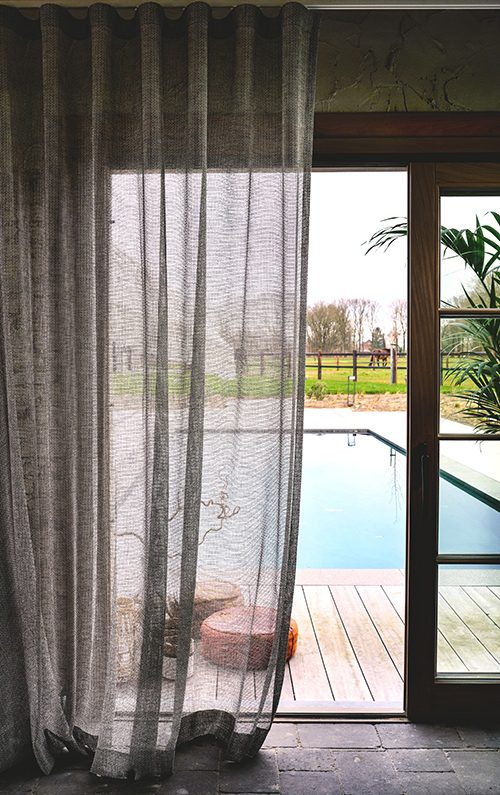 Onze (over)gordijnen worden volledig op maat gemaakt en sluiten naadloos aan bij elke woonstijl, van klassiek landelijk tot strak modern. Je hebt keuze uit een brede waaier aan stoffen en afwerkingen: transparant, lichtdoorlatend, verduisterend of zelfs akoestisch dempend.