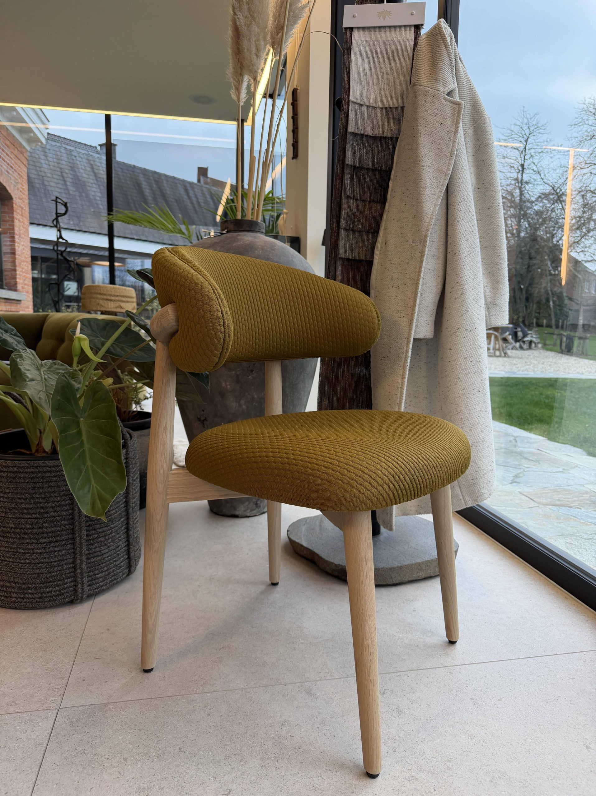 Eigentijdse stoel – ruim assortiment stoffen en houtkleuren. Gepresenteerd in volgende combinatie: Bekleding: Stof, Metropole collectie, Pandan, 39 Poot: Eiken, Nature White